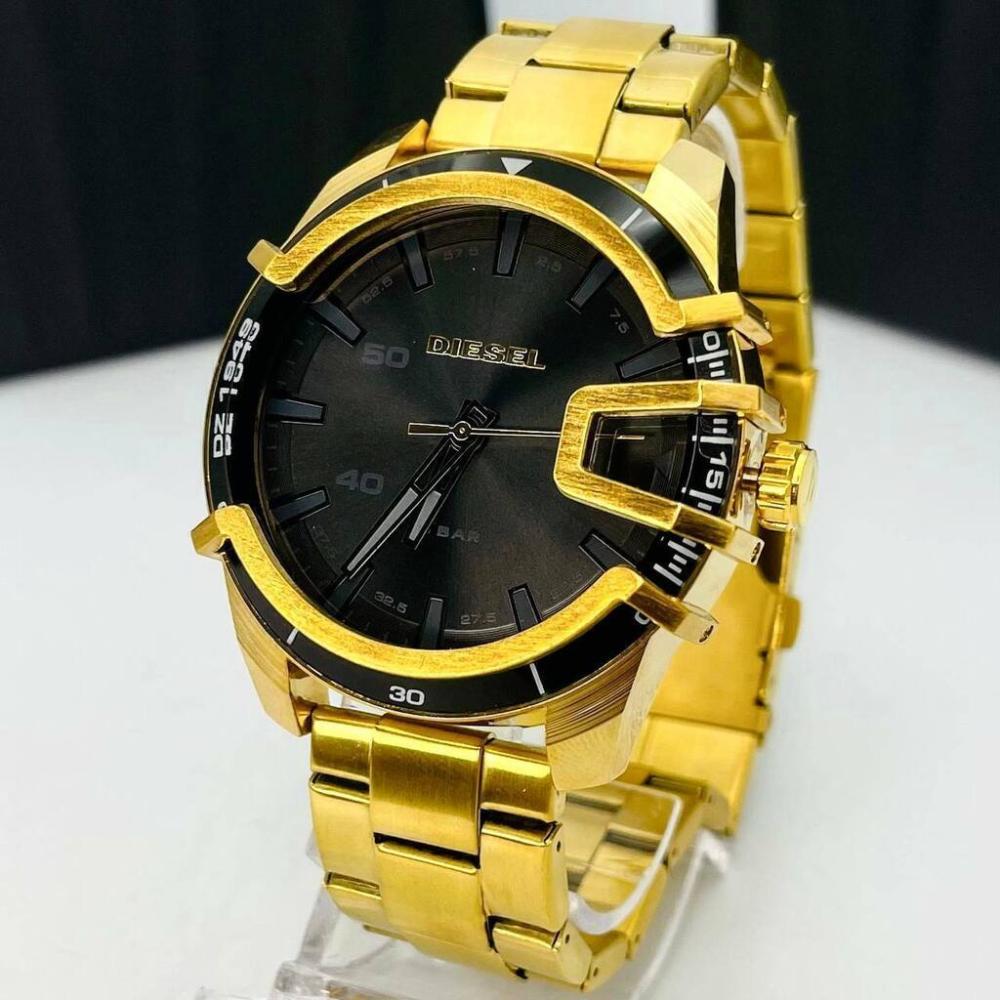 Relógio 1ª Linha 5 BAR no Atacado – Dourado e Preto – Pulseira de Aço