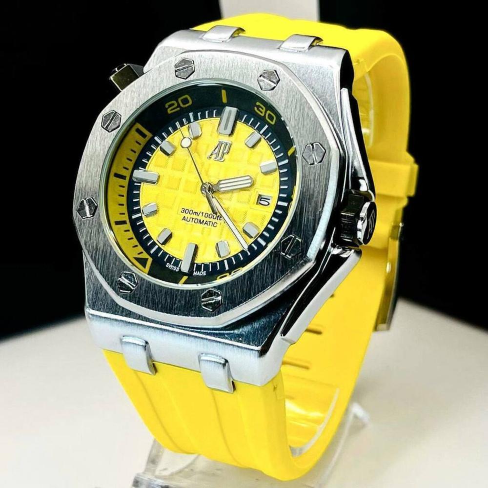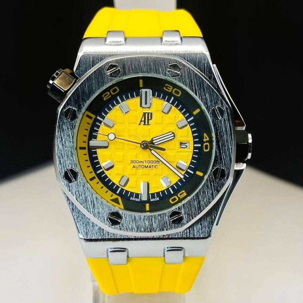 • 1x Relógio Audemars Piguet Linha Diamante Royal Prata e Amarelo – Pulseira de Borracha