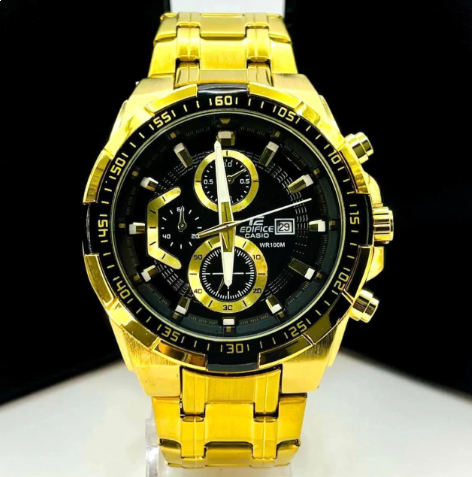 Relógio Casio Edifice Primeira Linha 100% Funcional no Atacado – Dourado com Fundo Preto