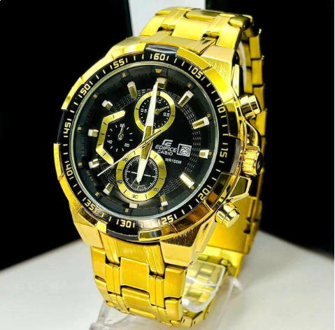 O Relógio Casio Edifice Primeira Linha 100% Funcional no Atacado é a escolha ideal para revendedores que buscam um produto sofisticado, resistente e com alta aceitação no mercado. Com design imponente, acabamento dourado em aço e fundo preto com detalhes dourados, este modelo une elegância e funcionalidade para o dia a dia.