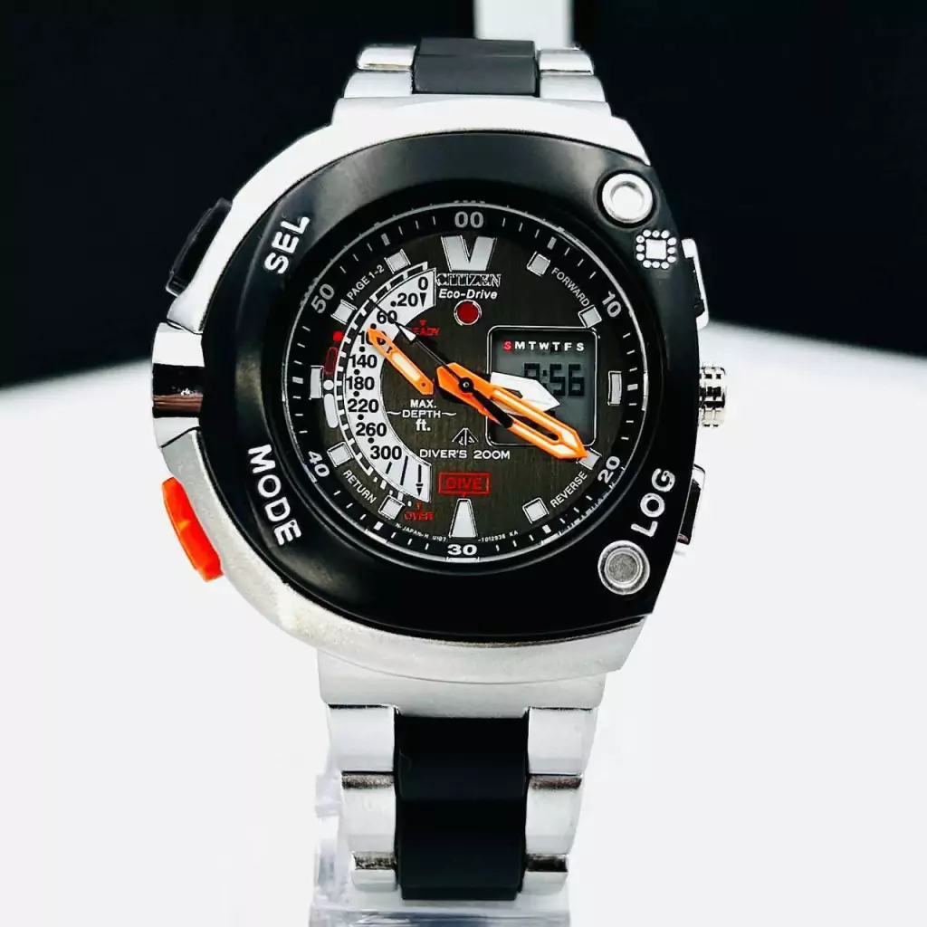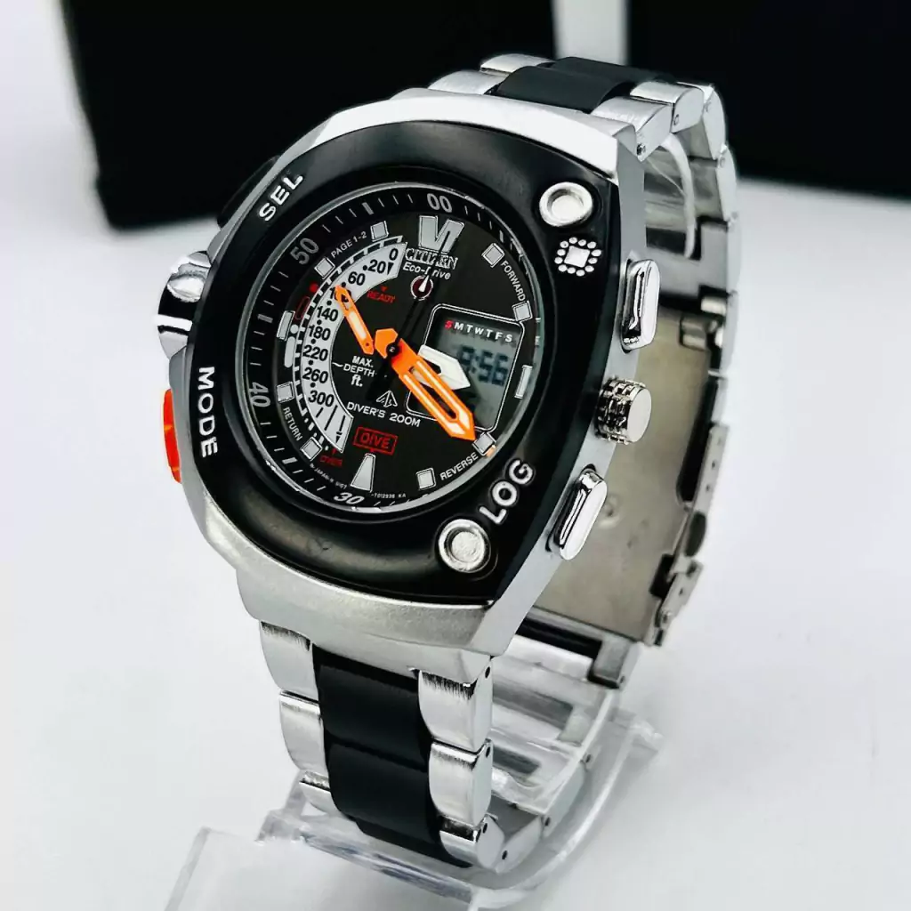 O Relógio Citizen Aqualand Meia Lua Pulseira Mista no Atacado é um modelo de alto impacto visual, ideal para revendedores que buscam um relógio esportivo, robusto e com excelente aceitação no mercado. Combinando design imponente, funções analógicas e digitais e acabamento premium, este relógio é perfeito para quem deseja aumentar as vendas com um produto de giro rápido e ótima margem.