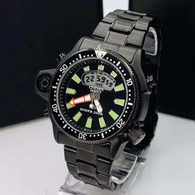 O Citizen Promaster combina resistência, estilo e funcionalidade. Seu visual totalmente preto transmite modernidade e elegância, enquanto a construção em metal com pulseira de aço garante durabilidade e conforto. Um relógio versátil, à prova d’água, pronto para acompanhar qualquer rotina.