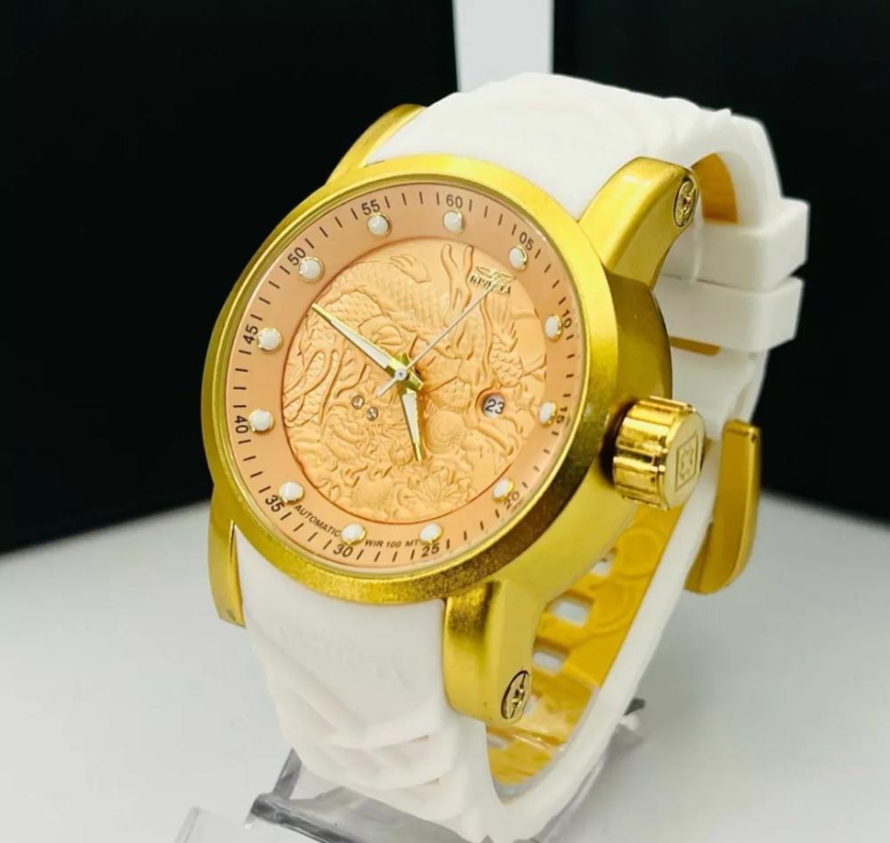 Relógio Invicta Yakuza S1 Dourado no Atacado – Pulseira de Borracha Branca