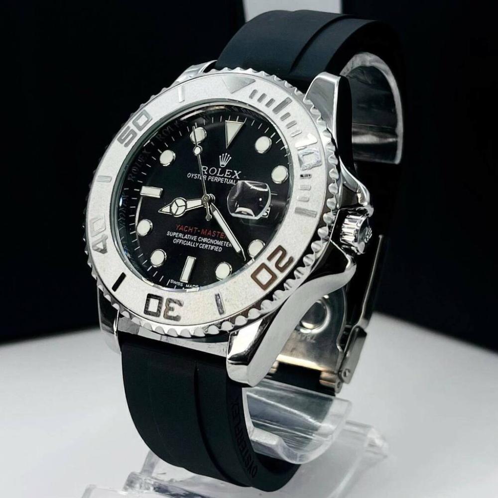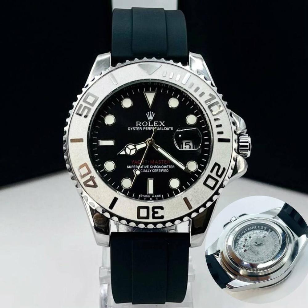 Relógio Rolex Atacado Primeira Linha Yacht Master Prata e Preto – Pulseira de Borracha