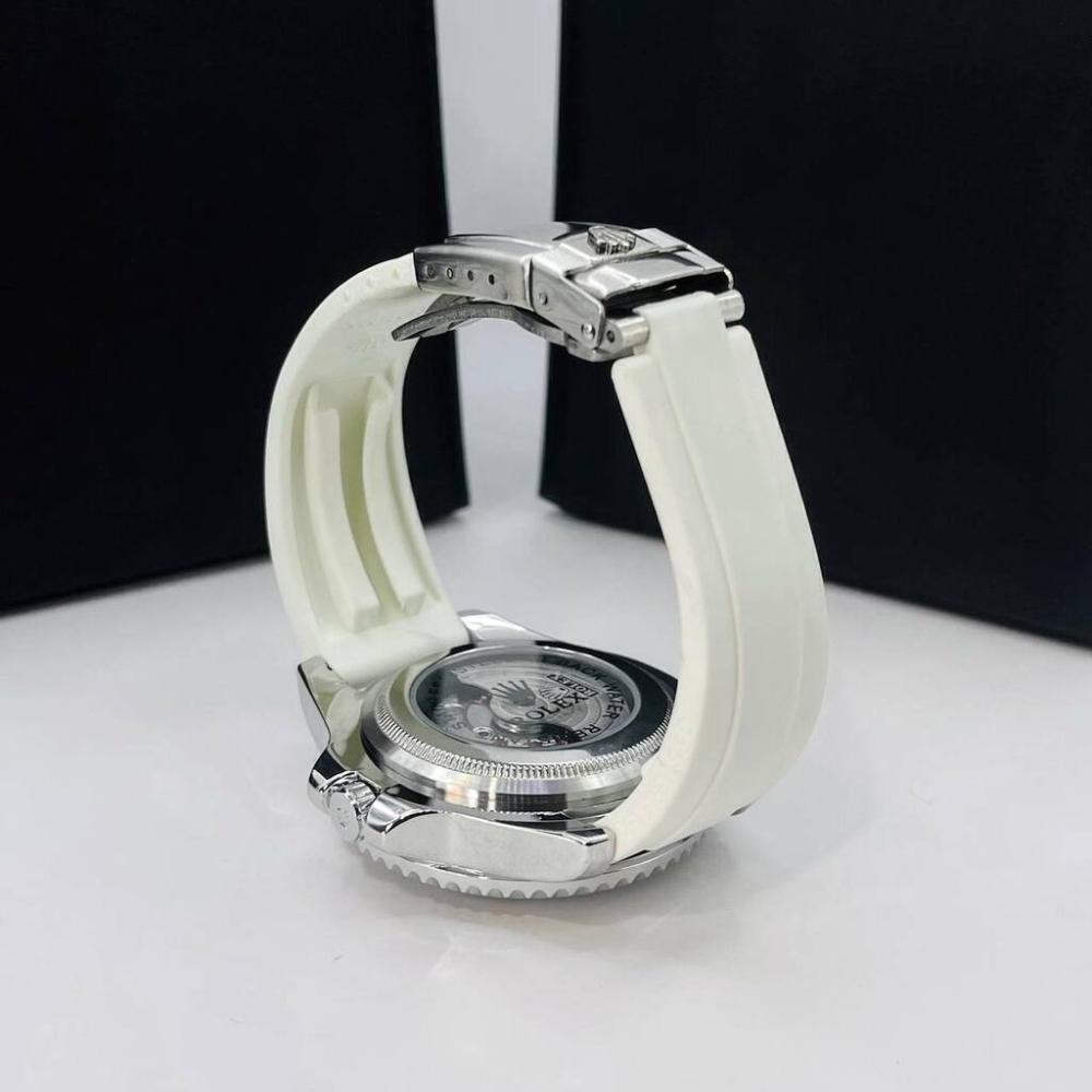O Relógio Rolex Primeira Linha Yacht Master Prata, Preto e Branco no Atacado é um modelo moderno e esportivo, com visual limpo e sofisticado. A combinação da caixa prata, mostrador preto e pulseira branca em borracha oferece um design diferenciado, ideal para revendedores e lojistas que buscam um produto com alta aceitação e excelente potencial de vendas.