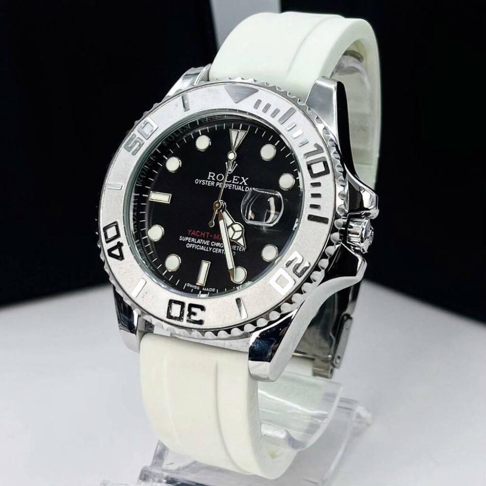 Relógio Rolex Primeira Linha Yacht Master Prata, Preto e Branco no Atacado – Pulseira de Borracha